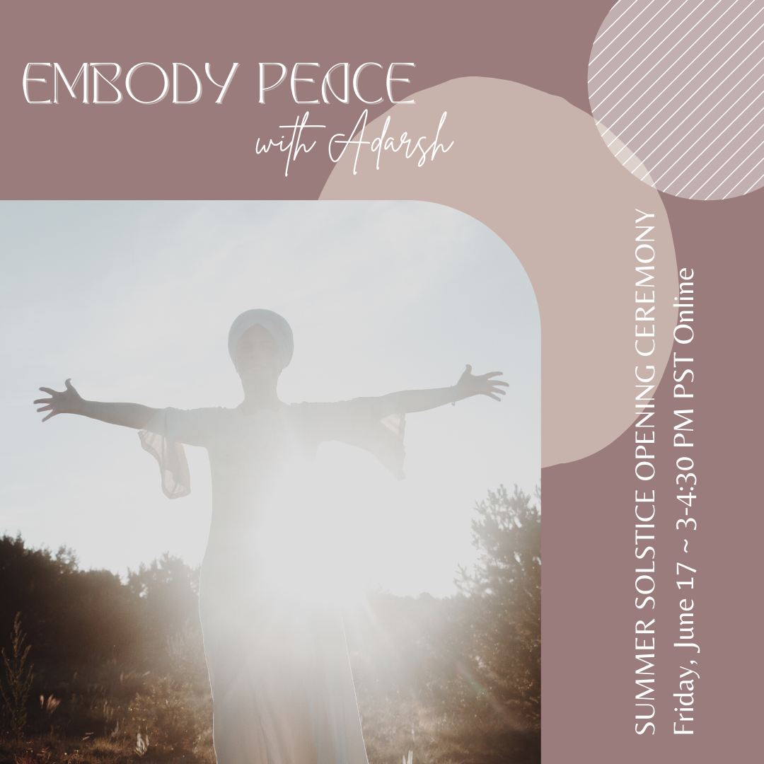 What does it take to cultivate peace not only for ourselves, but for and with others? Join us for this opening class for the Summer Solstice, where we will practice Kundalini Yoga, breathwork, chanting and Celestial Communication to explore and cultivate a space of peace.