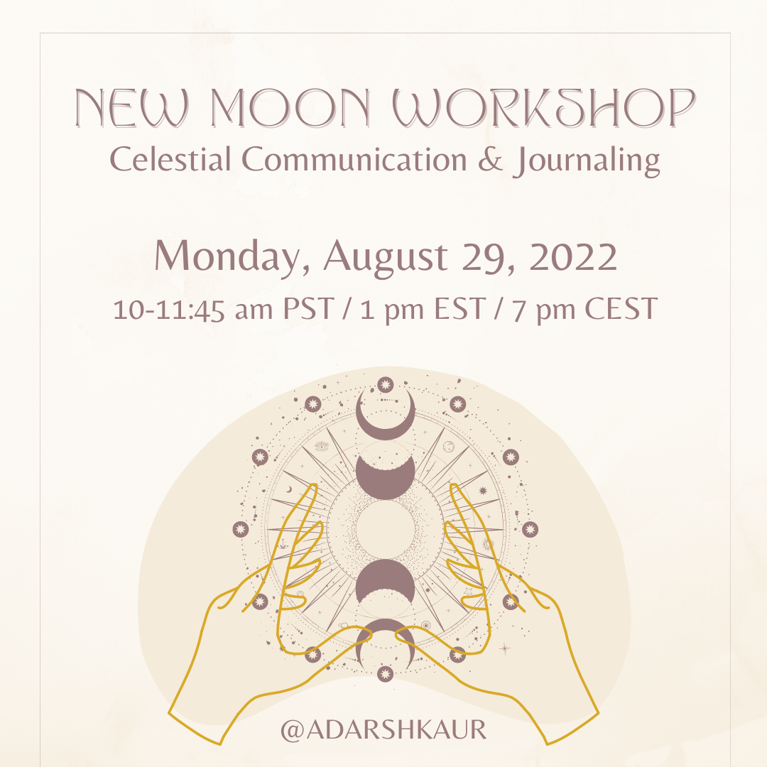 This is a 105 minute session guided by Adarsh to journal about your obstacles, your dreams, and listening deeply to your soul for the creative and aligned solutions that will serve you and the world. Adarsh will share Celestial Communications curated especially for this new moon to connect you deeper into a state of calm to hear and feel your soul voice, and the Community Support will amplify your intentions.